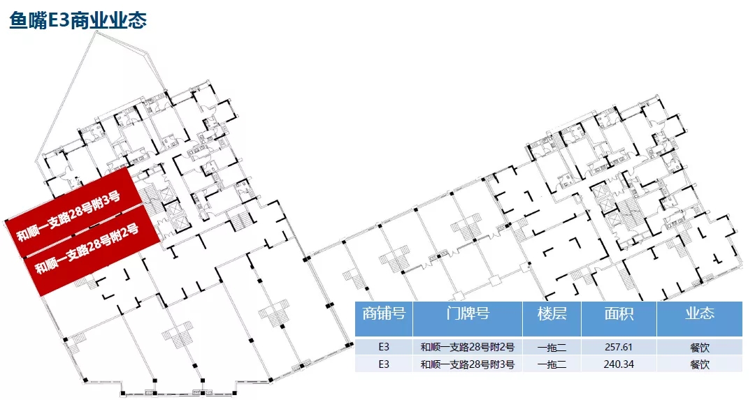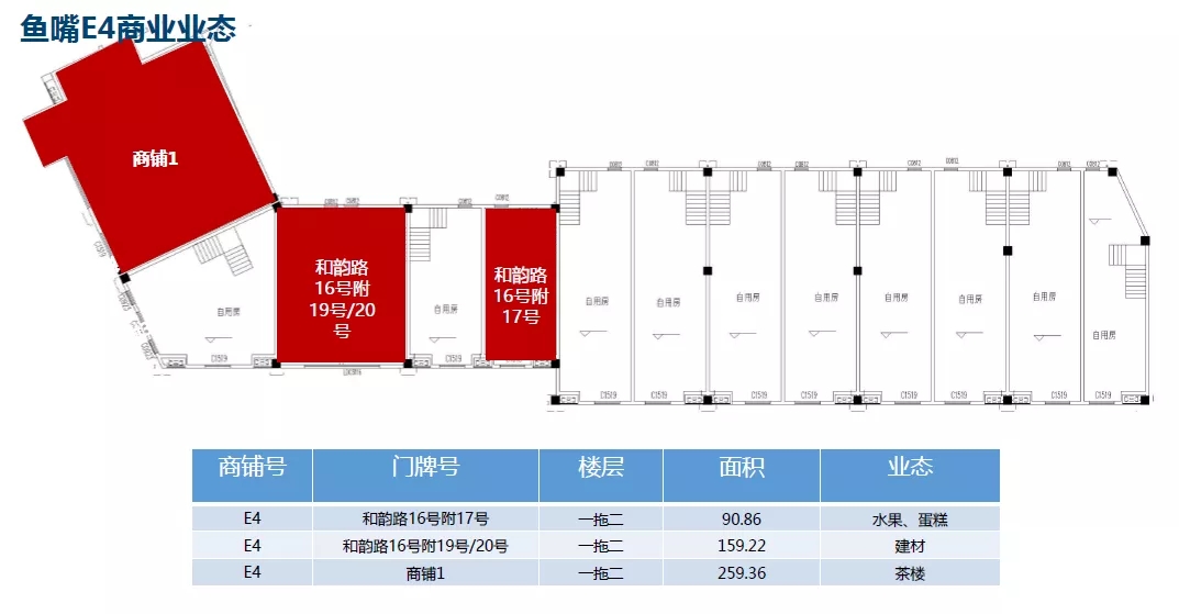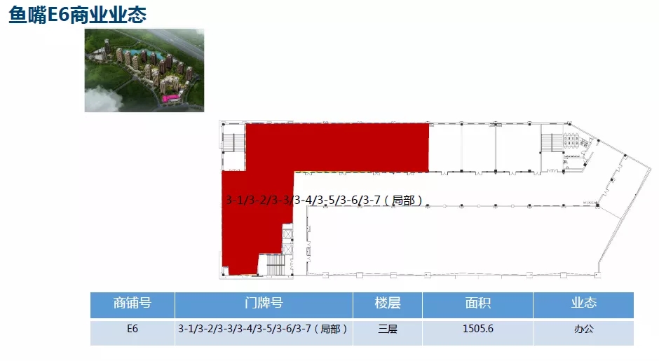 (二)魚嘴福居:E3號(hào)樓局部,E4號(hào)樓局部,E6號(hào)樓局部招商面積2512.99平米.