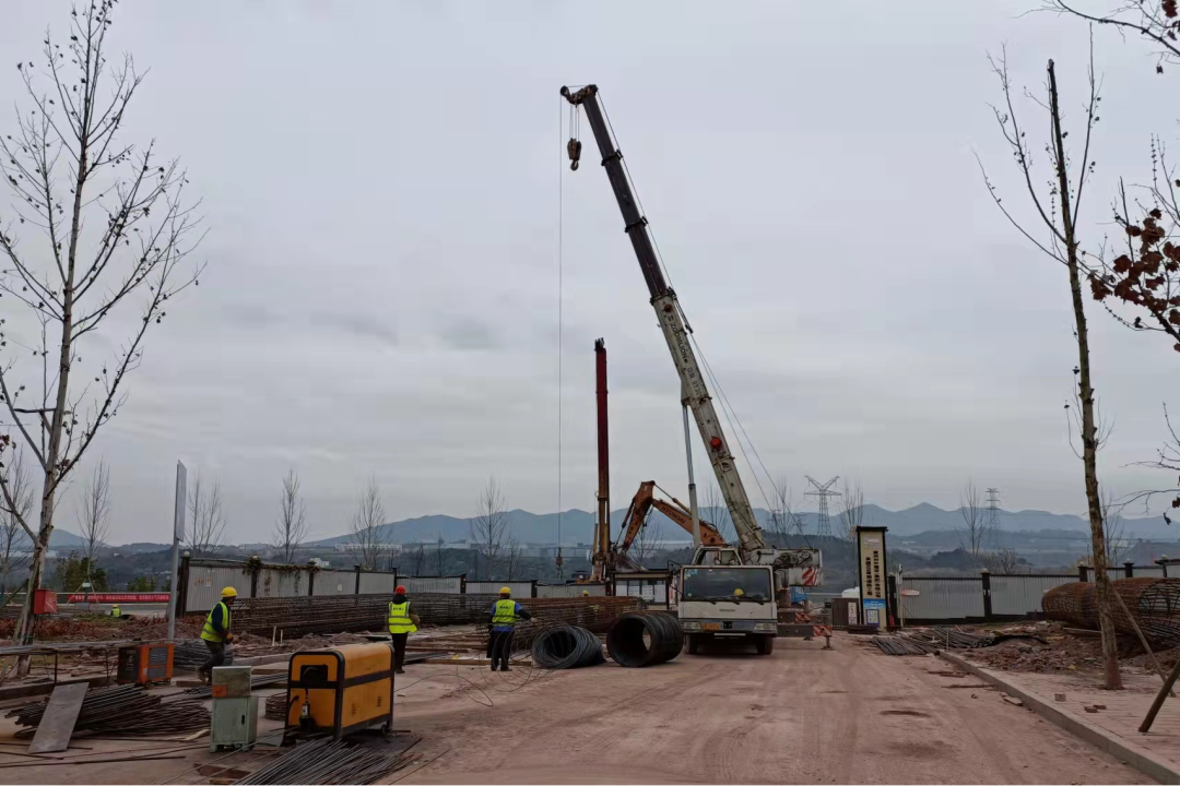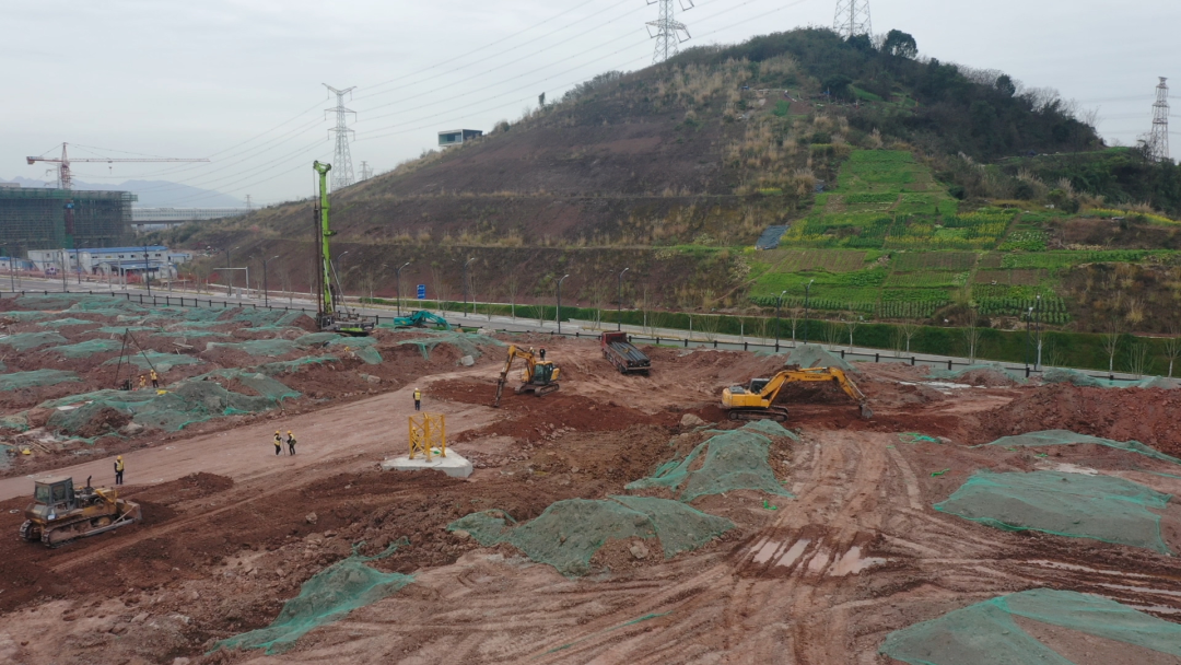 幾公里之外的民生兩江新區(qū)綜合物流基地二期現(xiàn)場,機(jī)器的轟鳴聲不絕于耳。