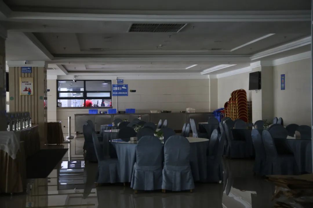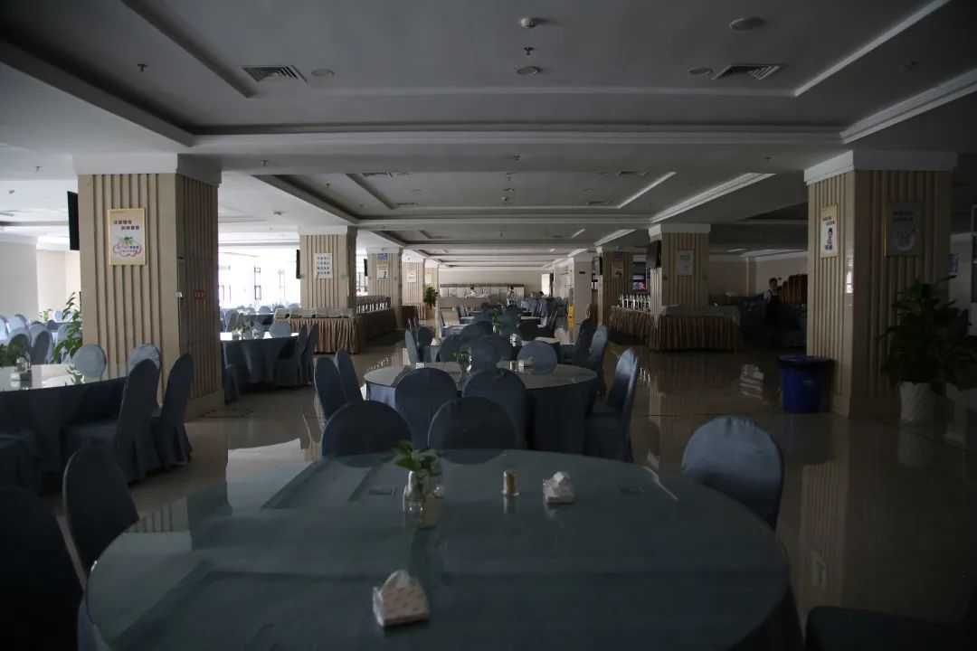 集團(tuán)食堂就餐區(qū)域燈光全部關(guān)閉,室內(nèi)光線全來自于自然光。