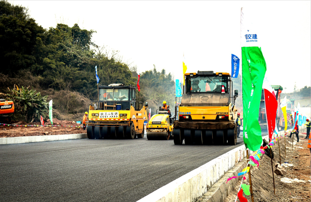 科創(chuàng)大道(人高路)二期、三期進(jìn)行路面瀝青鋪設(shè)