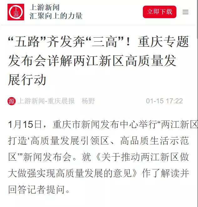 1月15日,重慶市政府新聞辦舉行兩江新區(qū)打造“高質(zhì)量發(fā)展引領(lǐng)區(qū) 高品質(zhì)生活示范區(qū)”新聞發(fā)布會。