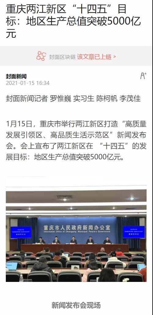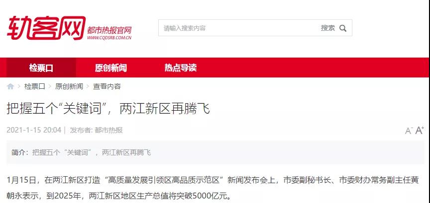 重慶之聲1月15日19點《968晚新聞》播出頭條消息:兩江新區(qū)打造高質(zhì)量發(fā)展區(qū)高品質(zhì)生活區(qū),2025年GDP將達(dá)5000億元。