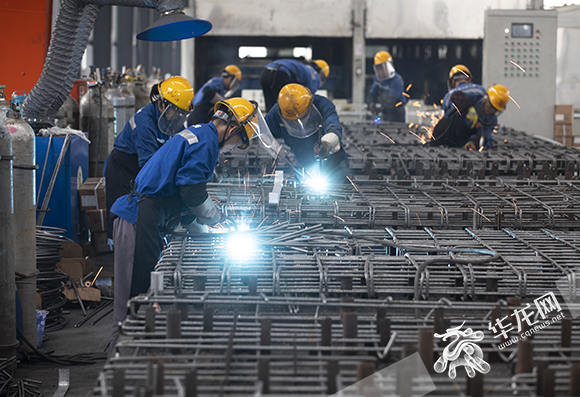 在軌道4號線二期軌道板預(yù)制場,生產(chǎn)車間有鋼筋加工區(qū)、混凝土澆筑區(qū)等12個工作區(qū)域,但施工人員僅20余名。工人們操作機械有序作業(yè),一天可預(yù)制軌道板70塊。